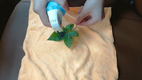 往树叶上一喷