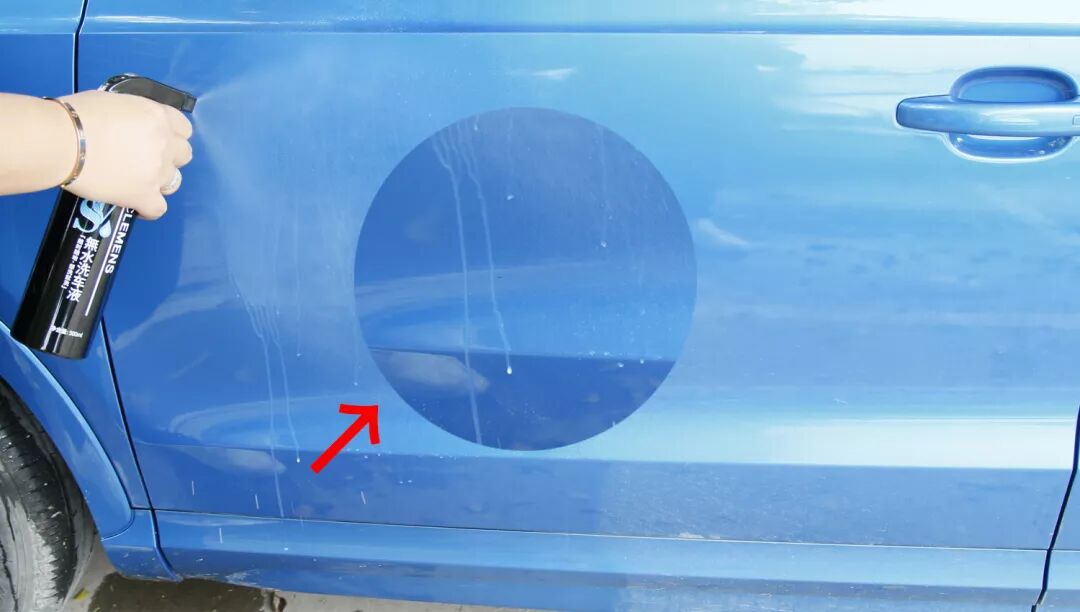 在测试的过程中,我们惊喜的发现,将Astree无水清洁剂喷洒在污渍上面污渍很快就溶解了,并顺着清洁剂流了下来这时候只需用毛巾轻轻一擦,漆面就能恢复往日干净。