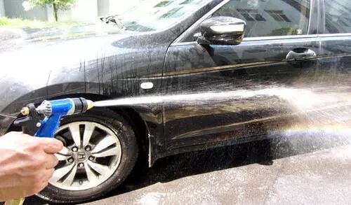 专业的洗车第一遍是先用细水慢流,从上往下冲,目的是把车上沾的灰尘颗粒用水流带走,之后再调高水枪压力进行冲洗。要是一开始就用高压水枪或者直接用抹布擦的话,那就等于是让灰尘颗粒在车漆表面摩擦,会使车漆出现细小的刮痕。