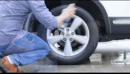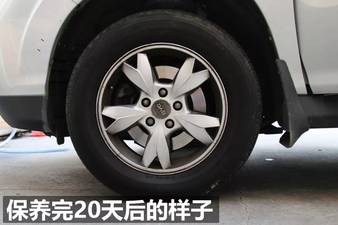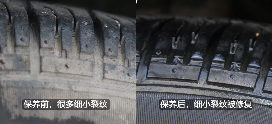 可以看到用大凤轮胎蜡保养完的轮胎像新的一样
